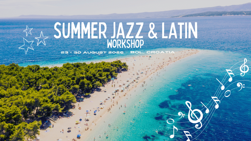 Join our Summer Jazz & Latin Vocal Workshop in Bol, on the beautiful island of Brač from 23 to 30 August 2026! This immersive program combines jazz and Brazilian music styles, improvisation, and holistic vocal techniques to help singers develop confidence, expression, and their unique musical voice. Participants will work on 1–2 individual songs with an accompanist and trio, prepare a group piece, and perform live at the final concert. The workshop includes bodywork, breathwork, mindfulness practices, relaxation, visualization, circle songs, arranging, communication with the band, and more. Suitable for singers of all levels, this is a unique opportunity to explore jazz, Latin rhythms, and Brazilian styles while enjoying the inspiring surroundings of Brač.